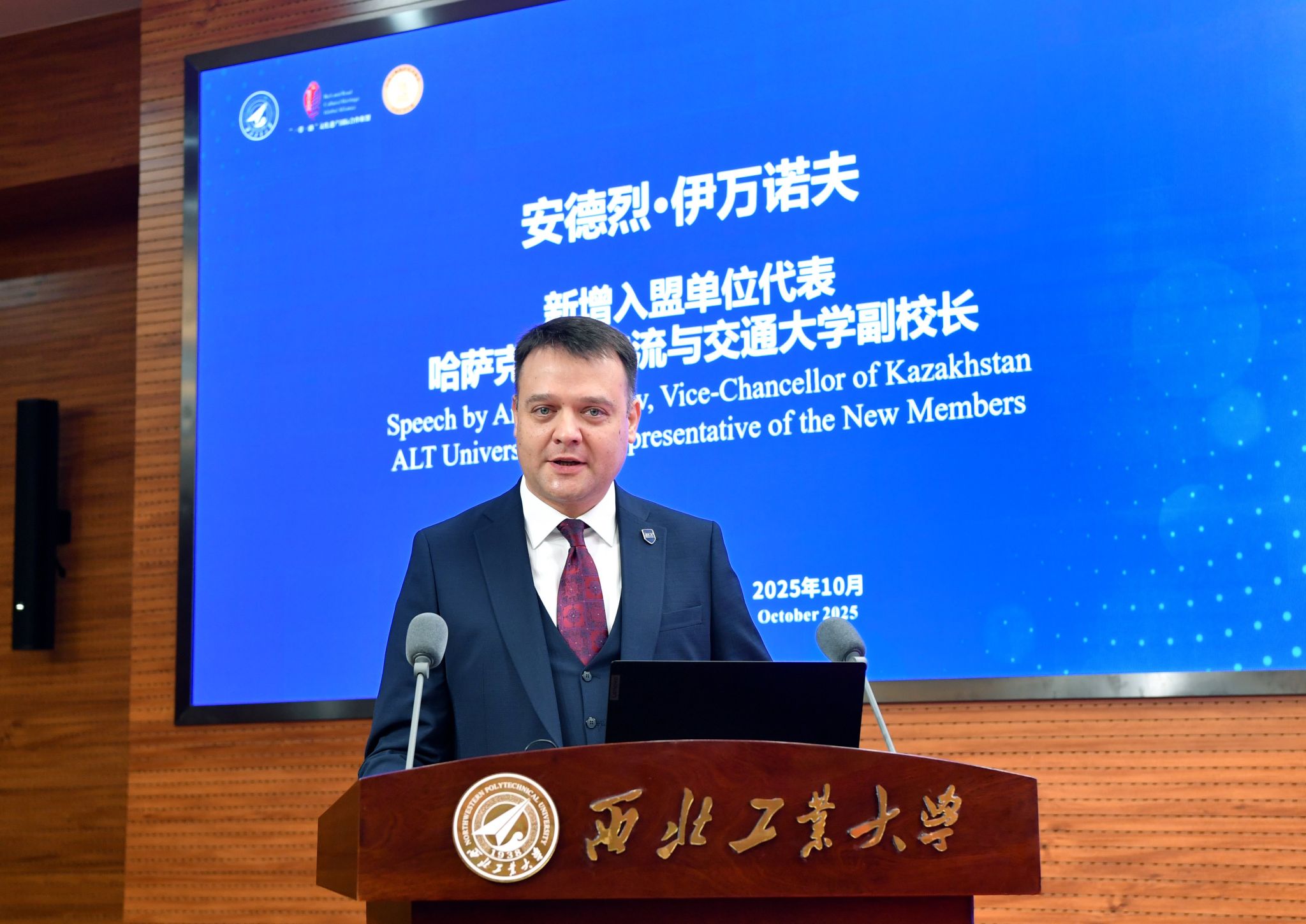 哈萨克斯坦物流与交通大学副校长Andrey Ivanov作为联盟新增入盟单位代表发言,他感谢大会主办方邀请及西北工业大学此前合作支持。他指出,该校是哈国内领先的现代化理工院校,虽以交通工程、通信技术及物流管理为特色,但重视信息技术与人工智能在文物保护领域的创新应用。希望借助加入“一带一路”文化遗产国际合作联盟的契机,构建哈中及亚欧文保合作桥,助力全球文保发展。